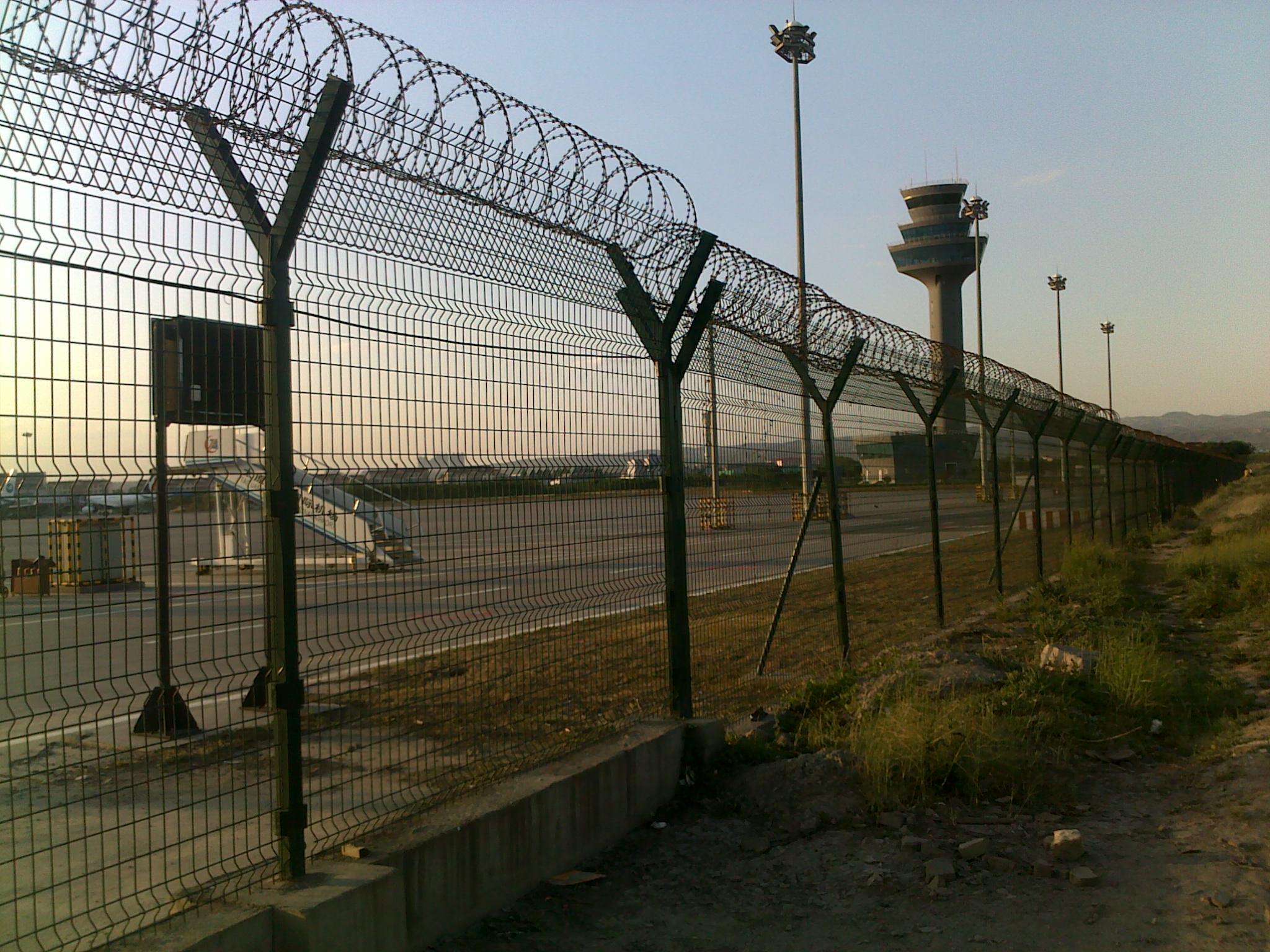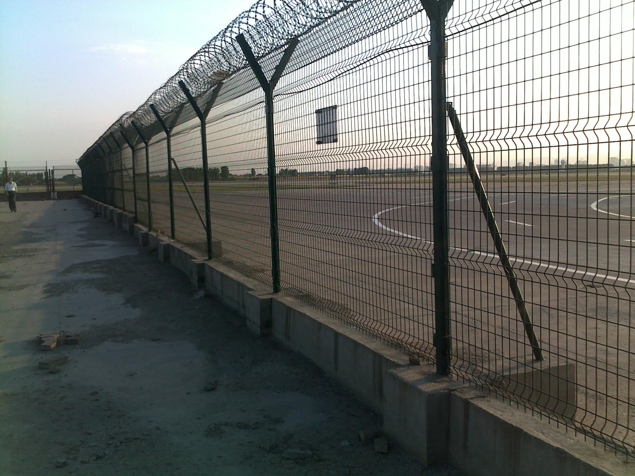 機(jī)場護(hù)欄網(wǎng)又稱作“Y型安全防御護(hù)網(wǎng)”,是由V型支架立柱加強(qiáng)型焊接片網(wǎng),安全防盜連接件和熱鍍鋅刀片刺網(wǎng)組成強(qiáng)度和安全防御性級別很高。被廣泛應(yīng)用在機(jī)場,軍事基地等高安全場所。